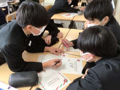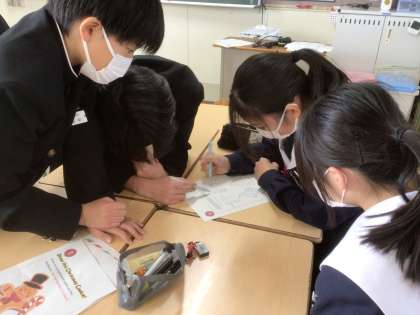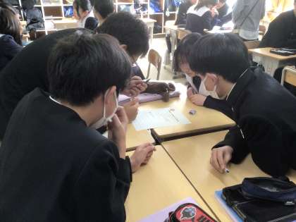 問題用紙が配られると、グループで協力して解きました。