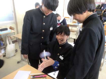 回転体とはどういうものなのか、実験をして体験的に学んでいました。