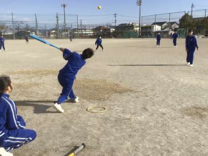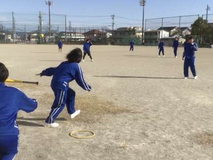 風が強く、時折砂煙が舞いますが、そんなことでは負けません。