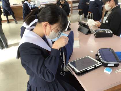 中には、カバーに刺繍を施している生徒もいましたね。