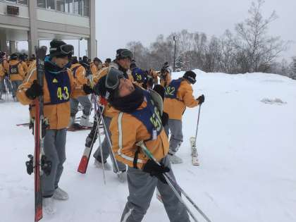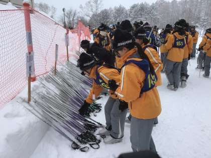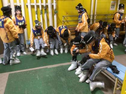 ウェアに着替え、靴や板を持って開校式へ。