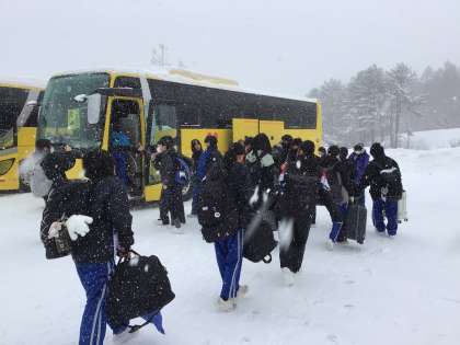 バスに乗り込み、高山市街へ向かっています。