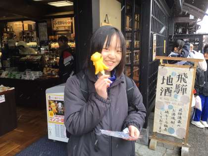 寒いのに、ソフトクリームやアイスクリームを食べる生徒が多いです。