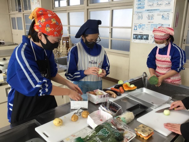 1・2・3・4学級の生徒たちが、楽しみにしていたカレーパーティーの準備をしていました。
