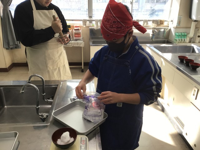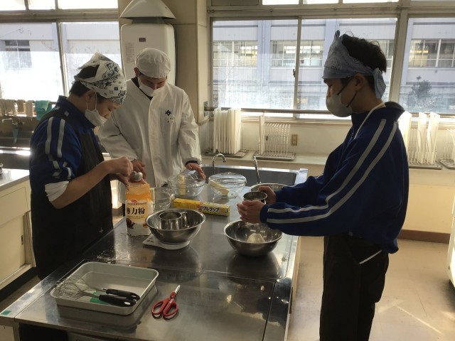 1・2学級の生徒がクッキーづくりに挑戦しています。