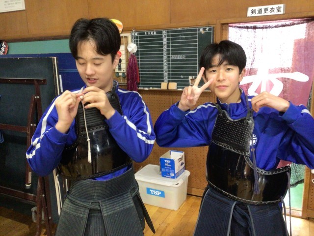 防具をつける練習をしていました。