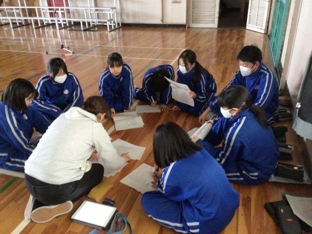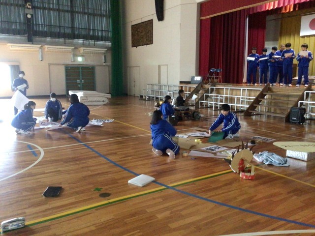 2年生が、体育館で卒業生を送る会の準備を進めていました。