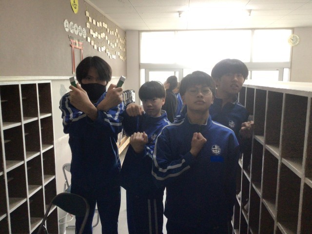 登校した生徒で、昇降口の掲示物を取り外していました。