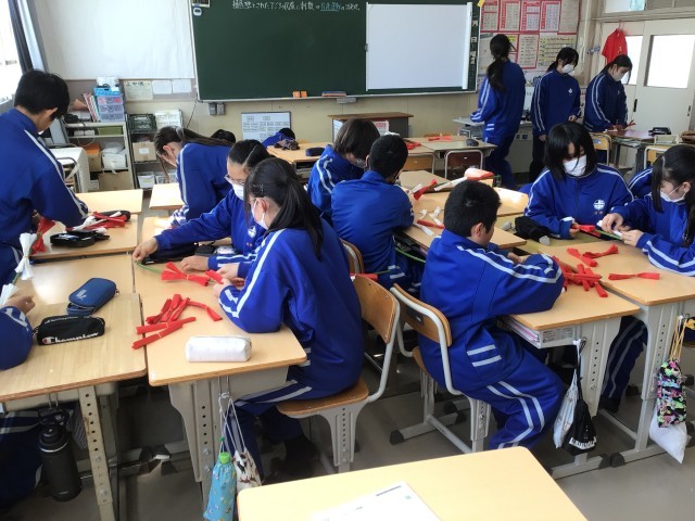 来週の卒業生を送る会に向けて、2年生が中心となって、それぞれ分担された準備を進めていました。