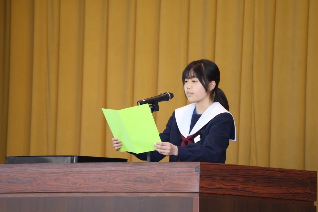 校長式辞の後、代表生徒による意見発表を行いました。