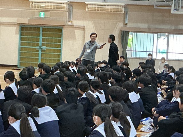 3年生は、今年度2回目の学年集会でした。前回は、新しく3年部に加わった先生方からの話が中心で、今回は他の先生方からの話でした。