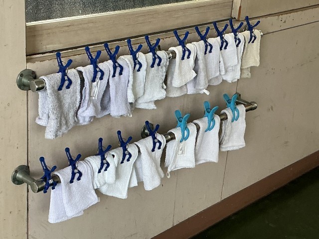 昇降口の傘、下足箱の運動靴、廊下にかけてある雑巾、どれも整頓されていて、気持ちがいいです。