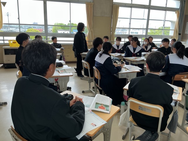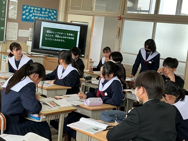 道徳の授業では、教材文「おじさん役と私」を通して個性を生かすことについて考えていました。登場人物の中で、何が変わったのかを話し合っていました。ほかの人の考えをきいて、それぞれがじっくりと考えていました。
