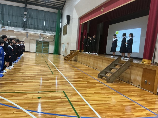 生徒会役員に続いて、各学級の級長、代議員、学級書記、その後、委員会の委員長・副委員長の認証を行いましたが、学校や学級のリーダーとしての活躍が期待できる、堂々とした返事、態度でした。