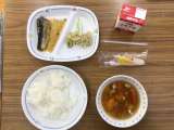 今日の給食は、「冬至献立」でした。 ごはん、かぼちゃのみそ汁、ぶりのゆずあんか...
