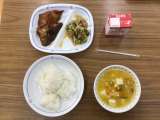 今日の給食は、「アジア・フレンドシップ献立」でした。 麦ごはん、チキンキーマカ...