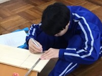 木工作品の製作に入っています。けがきをした後に、ノコギリでパーツを切り分けます。