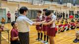 司会の準備も整いました。熱中症対策もしっかり養護の先生が準備しています。 優勝旗...