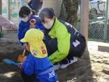 どの生徒も園児の目線に立って触れ合っていました。 園児たちも楽しそうでした。