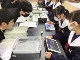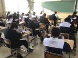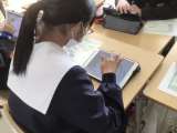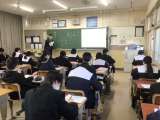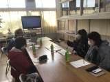 上郷中学校の地域学校共働本部室に、高嶺小と畝部小の地域コーディネーターさんが来て...