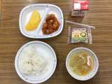 今日は、クリスマス献立でした。 麦ごはん、パスタスープ、チキンライスの具、オム...