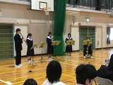 最後に、今取り組んでいる新曲を披露しました。 演奏を終え、代表生徒が演奏会終了...