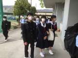 1年生の昇降口前に立ちました。 4月の登校は今日が最後ですね。 特に1年生の...