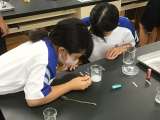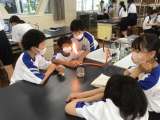 ガスバーナーで熱したり、水に溶かしたりし、これまで学習したことを活用していました...