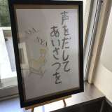 廊下に置かれた額に、積極的なあいさつを呼びかけるポスターが飾られています。 コ...