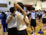 最後に、はじめにやった動きをもう一度やってみると、やりやすくなったと答える生徒が...