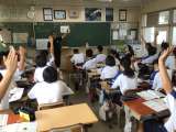 2年生は、各クラスそれぞれにあった題材で道徳を進めていました。 たくさん挙手して...