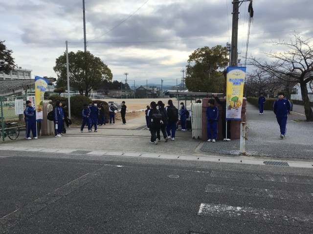 今朝は空気が冷たかったです。三寒四温の時期でしょうか。あいさつ運動、西門の様子で...