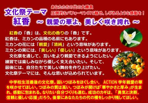 ・文化祭での生徒の特技を生かしたオープニングの創造、学級合唱の復活