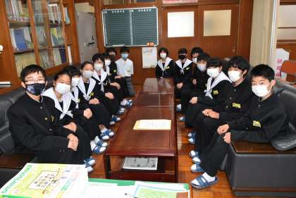 2枚目の写真は、この活動を始めてくれた生徒たちに校長室で感謝の意を伝えた時の様子です。