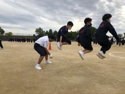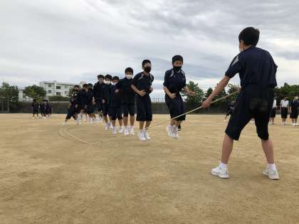 体育祭が延期となったため、プレ長縄大会をして、体育祭練習に一区切りをつけました。競技だけでなく、入退場も中学生らしい姿が見られました。