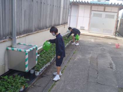 2年生の技術の授業で生徒たちがイチゴの栽培をしています。電照栽培の技術などを学んでいきます。生徒たちが楽しそうに水をあげている姿が輝いていました。どんなイチゴになるのか楽しみです。