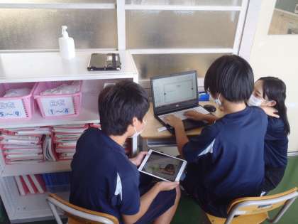 2年生では、これまで総合学習で取り組んできた学びを学年で発表を行います。集会で集まることはできないため、各クラスで動画を編集し、見合う形式となりました。生徒たちは限られた時間の中で、各クラスが工夫を凝らして動画を作成していました。また各個人に配られたICT機器を活用する場面も見られました。本番が楽しみです。