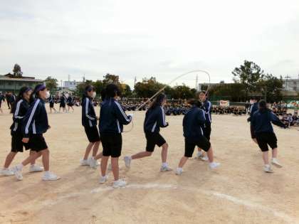 学年競技は、1年生「台風の目」、2年生「玉入れ」、3年生「八の字跳び」です。どの学級も練習の成果を生かして全力で取り組みました。