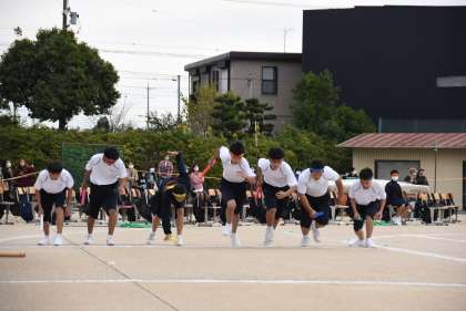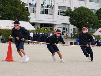 晴天の中、体育祭が開催されました。1年生は長縄、台風の目、リレーを行いました。競技以外にも、各クラスの学級旗や、応援グッズなどを作り、熱心に応援する姿も見られました。体育祭を通して得たものを、これからの学校生活に活かしていきたいと思います。