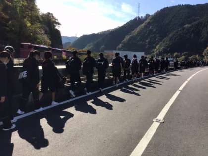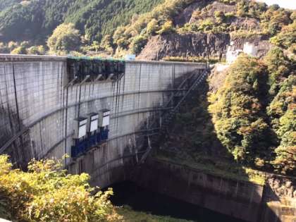 矢作ダムに着きました。ここから、約3Kmの山道を歩いて自然の家を目指します。