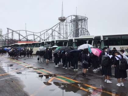 修学旅行 富士急ハイランドに着きました 公開日 2021/11/09 更新日 2021/11/09 お知らせ 富士急ハイランドに到着しました。 到着したら徐々に雨が止んできて、入場した時にはほとんど止みました。 ここからはグループ行動です。