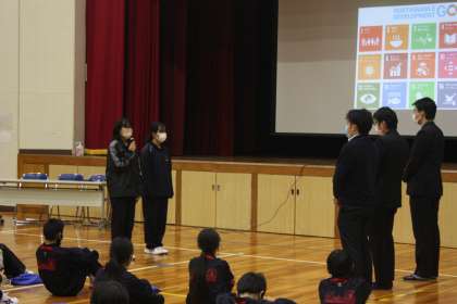 食品ロスについてのCMを作成し、お世話になった方々に披露しました。CM作りを通して、食品ロスは自分たちの生活に身近な問題であるということが分かりました。
