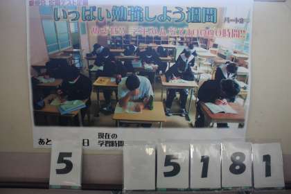 いっぱい勉強しよう週間 公開日 2022/02/04 更新日 2022/02/04 各学年から 級長会の企画でテスト週間に全員で10000時間勉強しようという取組を行っています。時間の量だけでなく、質の高い学習となるように頑張っています。 1年