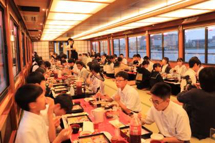 修学旅行1、2組屋形船で夕食