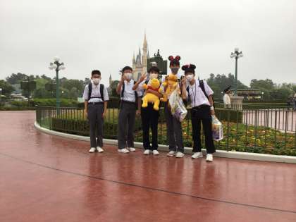 少し雨足が強くなってきましたが、夢の国に生徒たちは大はしゃぎしています!