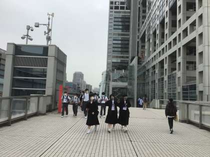 お台場に着きました。生徒企画の学年レク「宝探し」が始まりました。