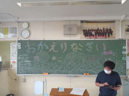 修学旅行から帰ってきた3年生が教室に向かうと「すごい」「びっくりした」と驚く生徒たちの姿がありました。廊下には大きなメッセージ、各教室の愛があふれる素晴らしい絵とメッセージが3年生を出迎えてくれました。