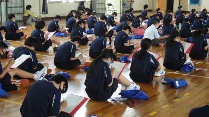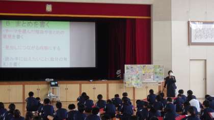 1年生の総合学習では、SDGsについての記事を集め、新聞切り抜き作品を作っていきます。そのために、中日新聞の岩井様より講演をしていただきました。