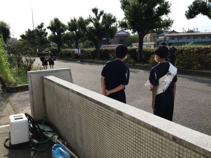 後期の生徒会役員を決める選挙に向け、選挙活動を生徒たちが行っています。朝の昇降口前では元気なあいさつが聞こえてきます。
