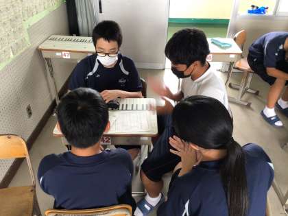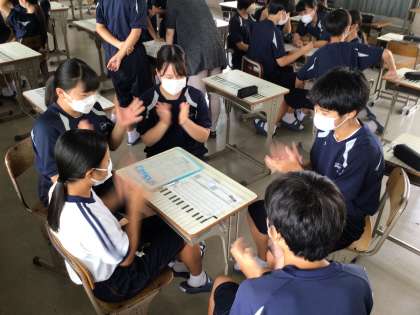 文化祭のボディパーカッションの演奏発表に向けて、実行委員たちを中心に曲の創作活動に取り組んでいます。放課の時間も使っていい曲をつくろうと頑張っています。どんな発表になるか楽しみです。